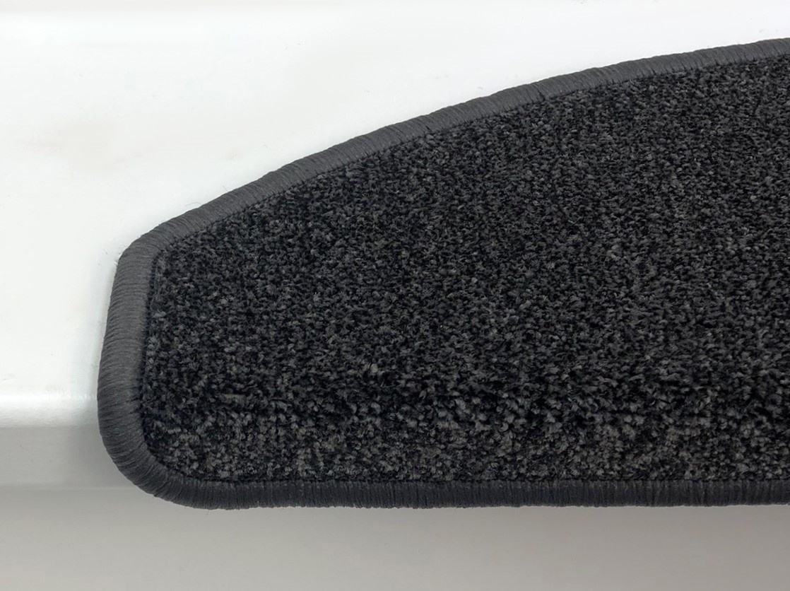 Trapmat Stardust is verkrijgbaar in 2 soorten: Halve maantjes en Rechte trapmatten. De maantjes kunnen op een rechte- en draaitrap. De rechthoekige kunnen alleen op een rechte trap.