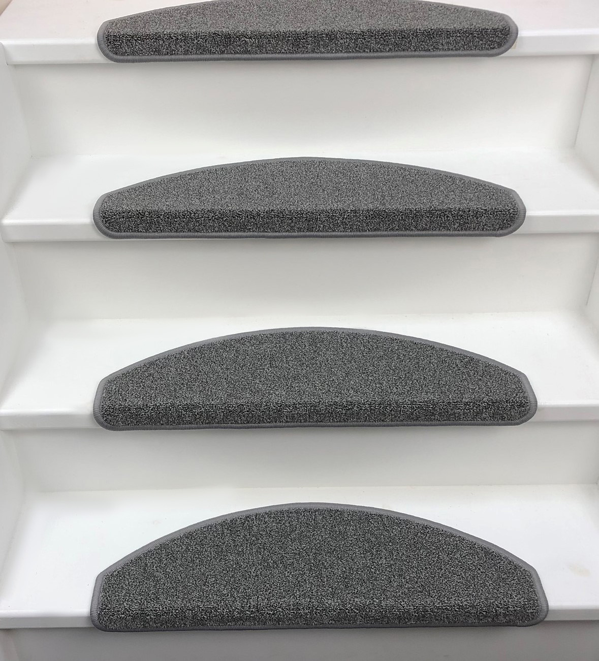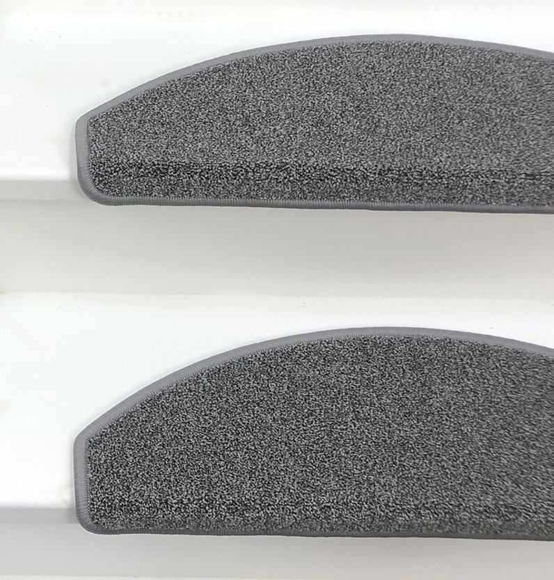 Trapmat Stardust is verkrijgbaar in 2 soorten: Halve maantjes en Rechte trapmatten. De maantjes kunnen op een rechte- en draaitrap. De rechthoekige kunnen alleen op een rechte trap.